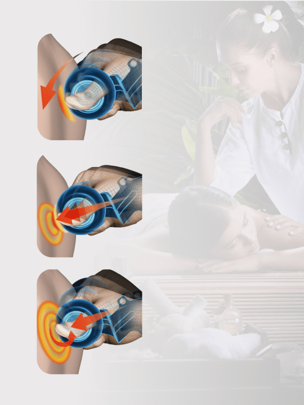 Controllando ogni movimento senza esercitare una pressione eccessiva sul tessuto vascolare, i movimenti ritmici delicati stimolano i linfonodi. Facilitano il passaggio dei liquidi attraverso i tessuti e i linfonodi.