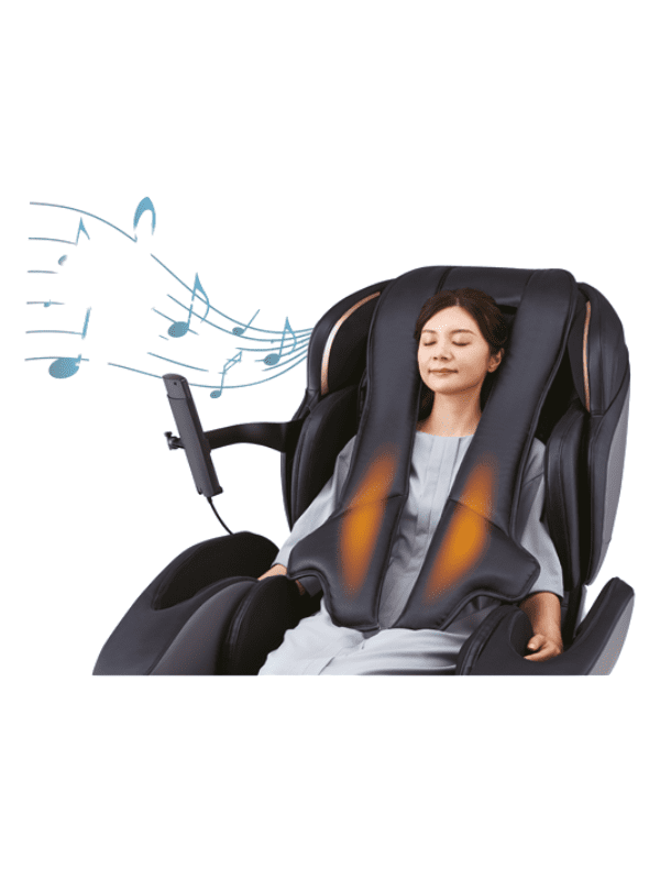 Dotata di altoparlanti appositamente progettati, la poltrona massaggiante Fujiiryoki JP-3000 vi avvolge in un lusso audio coinvolgente. L'armonia dei suoni vocali chiari e del suono stereo, potenziato da un equalizzatore multibanda integrato e da altoparlanti digitali DSP, crea una sinfonia di relax.